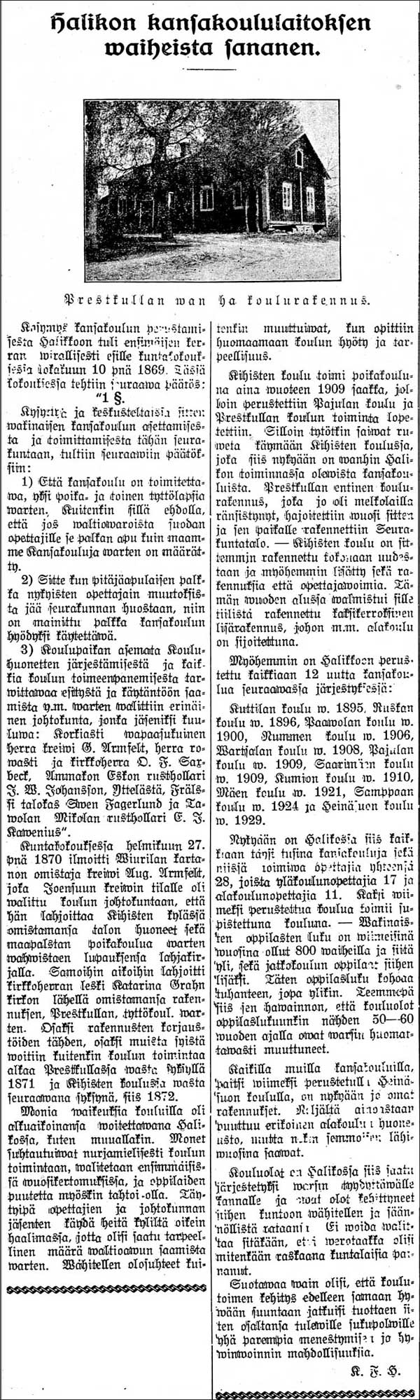 nykyään on wanhin Halikon toiminnassa olewista kanjakouluista.