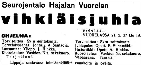 Ja monenlaista toimintaa Vuorelassa sen jälkeen oli: